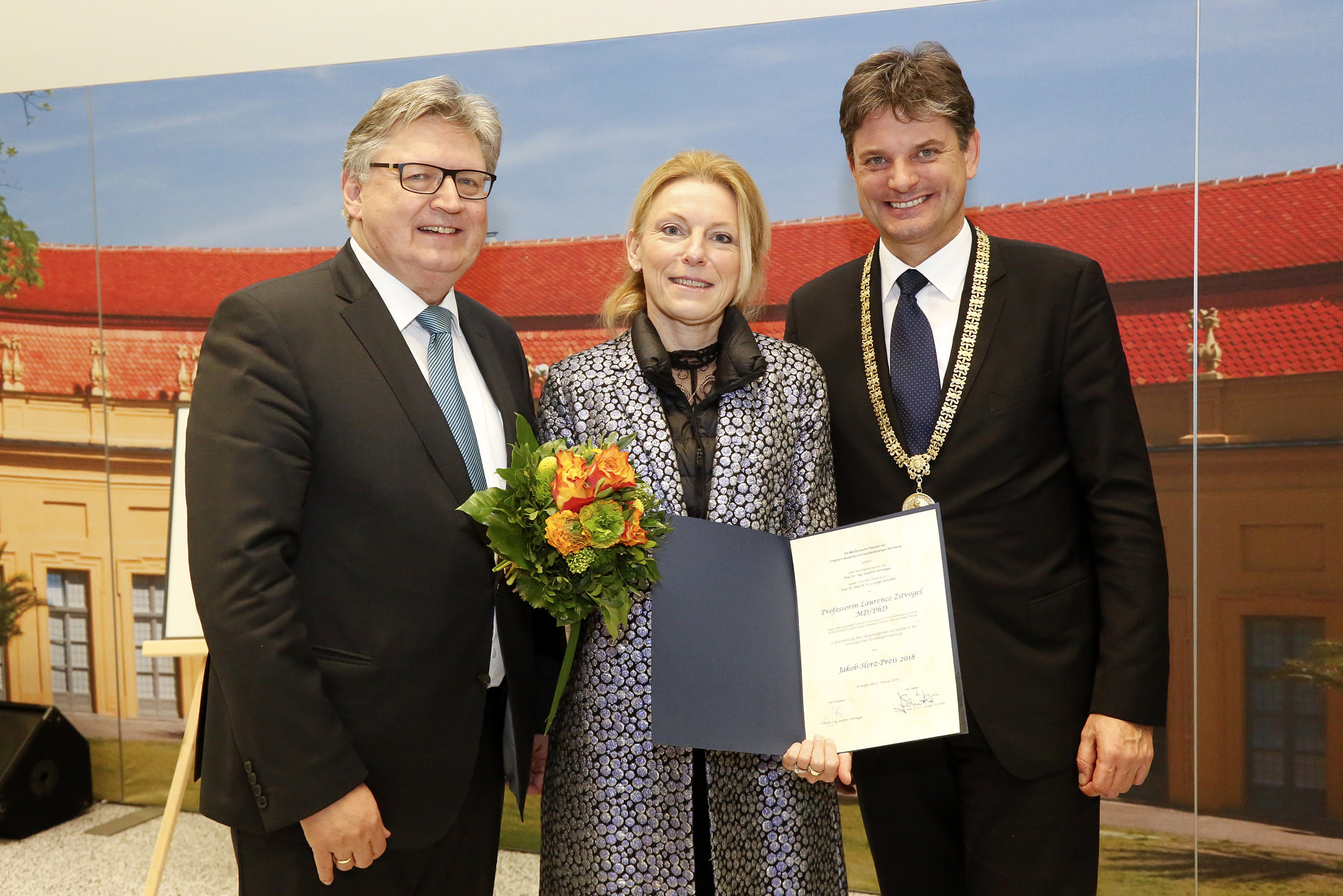 On 2 February 2018, the Jakob-Herz Prize has been awarded for the fifth time. The award honors outstanding scientific success in the whole field of theoretical and clinical medicine. This year’s awardee was Professor Laurence Zitvogel, MD, PhD, from Paris who is widely recognized for being a pioneer in the field of oncology and for her innovative achievements in the field of cancer immunotherapy.